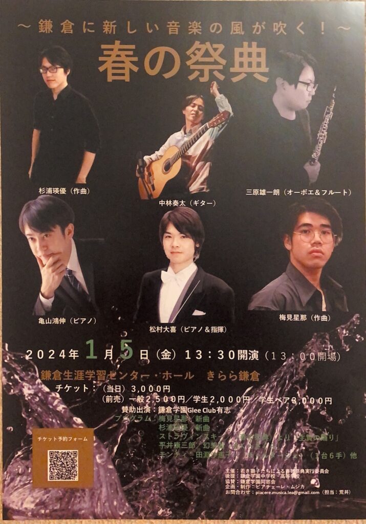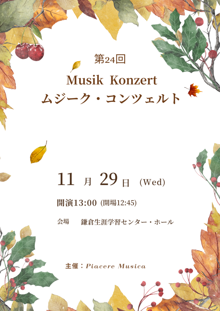 11月29日「第24回 ムジーク・コンツエルト」鎌倉学習センター 2024年1月5日(金)13:30『春の祭典』/鎌倉生涯学習センター・ホール